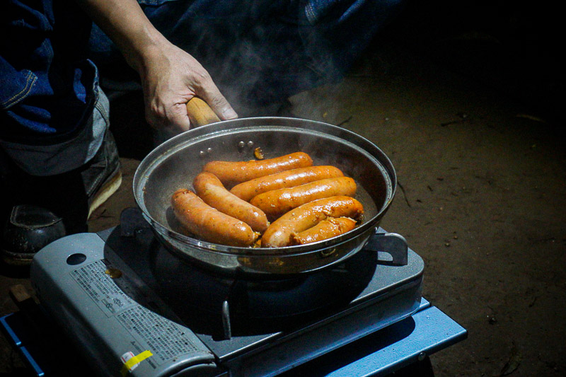 ソーセージも追加で焼いています。