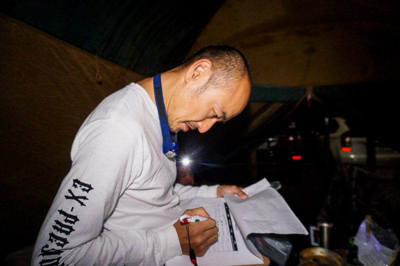 さて、チリくんが参加名簿に記入中。この名簿で精算するんで皆さんに書いてもらってます。