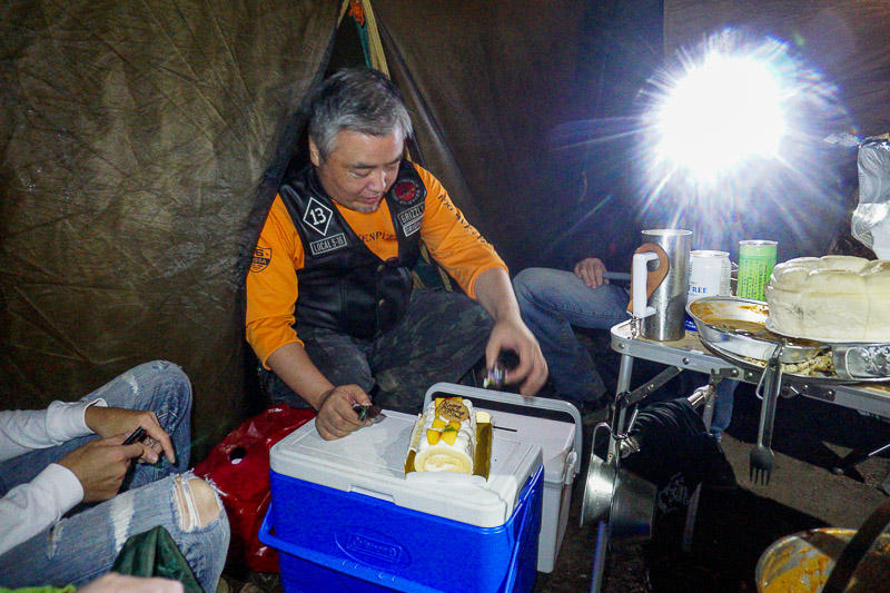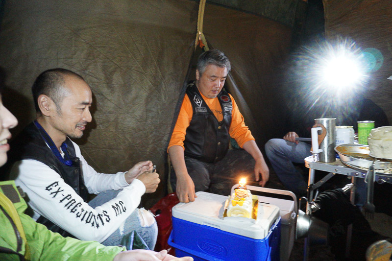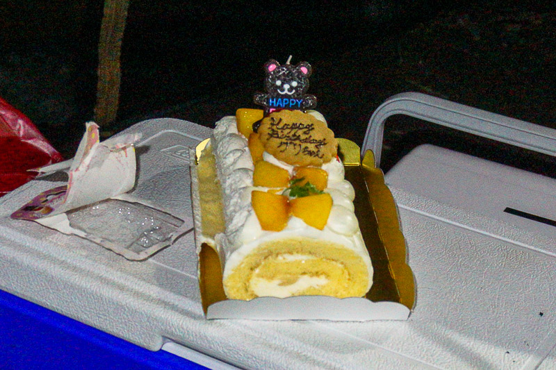 で、チリ夫妻がGrizzlyくんにバースデーケーキを持ってきてくれました。