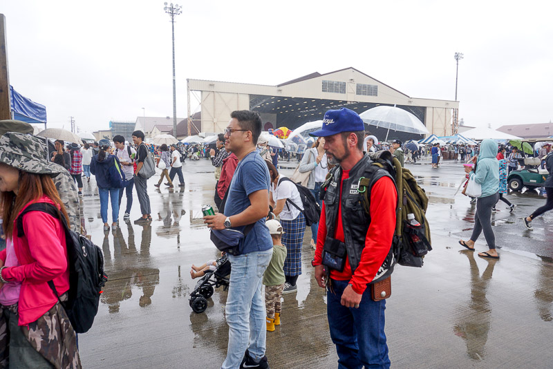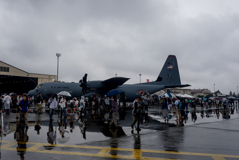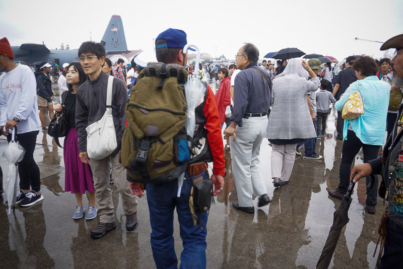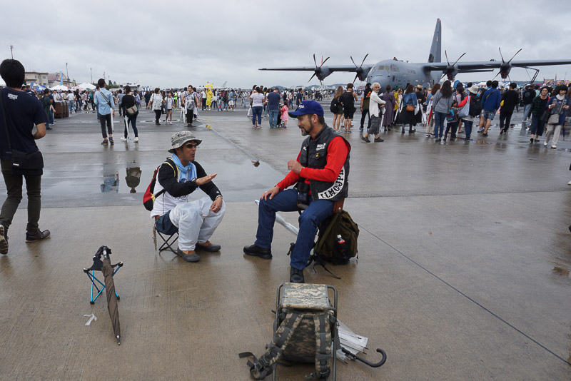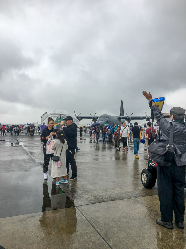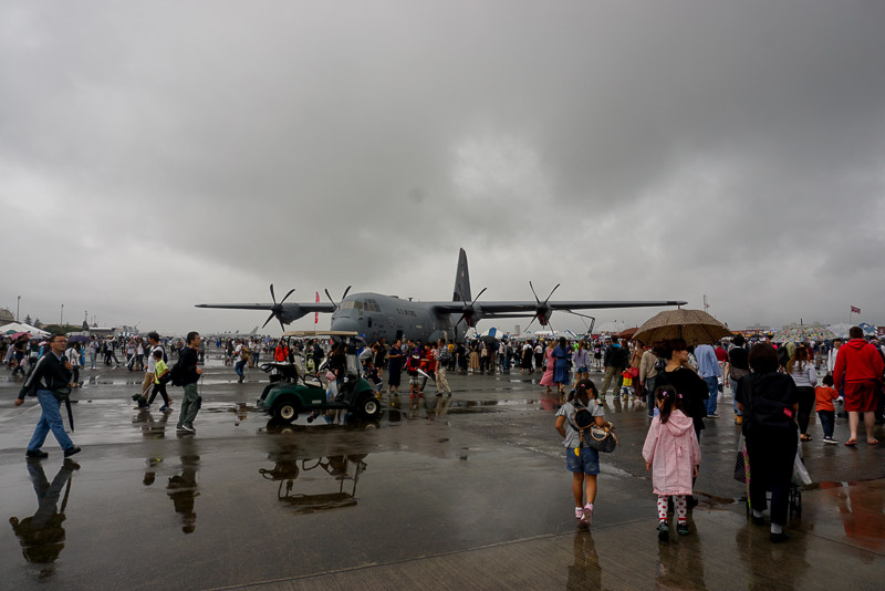 輸送機のゲートに向かって並んでいるのは難民の列ではありません、中に入って見学するのを待っている人の列です。100人以上いますが、1時間じゃあ駄目みたいです。