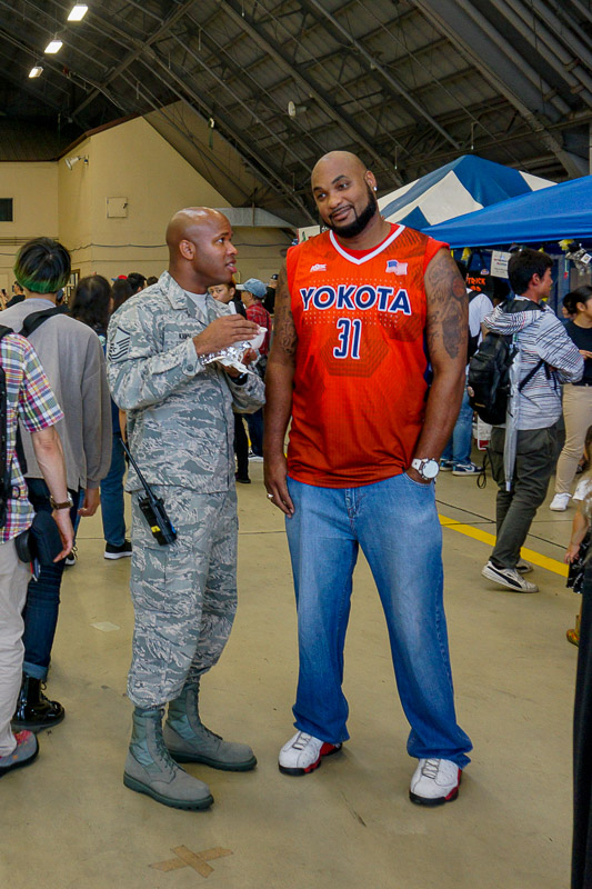 さっきのバスケットゲームに居た方。デカイアメリカ人の方と比べても頭一つ大きいですねえ。