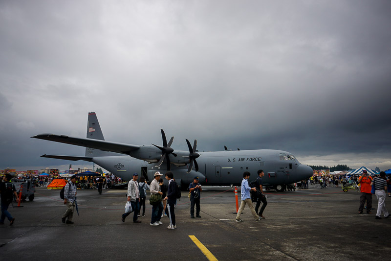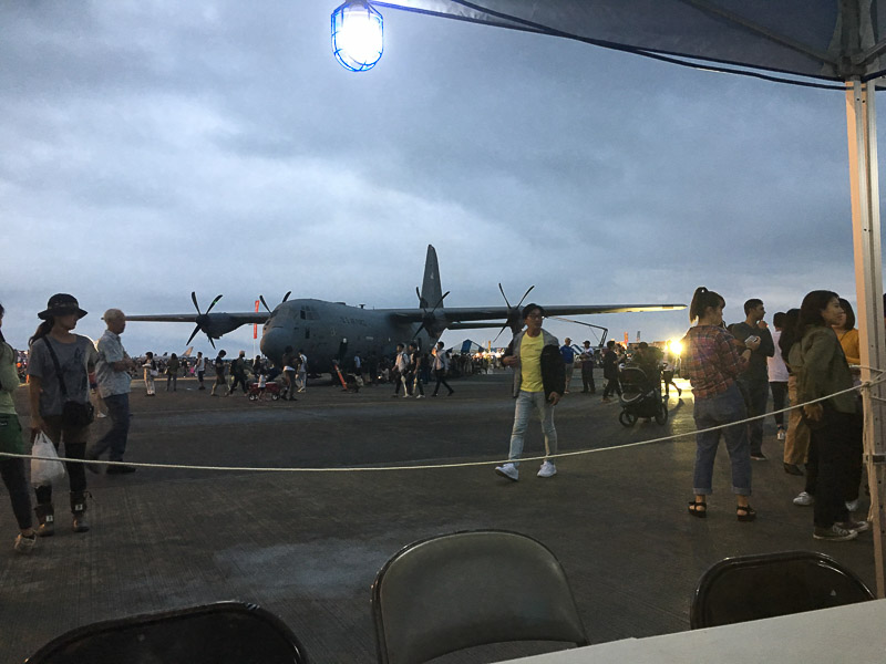 でも登場待ちの長い行列が出来てた輸送機の周りは空いてきたようです。でもまだ4〜5十人は待ってますが。