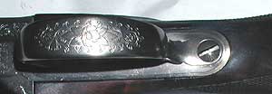 ここに見える、トリガーガードの前後部分の彫刻からさびている銃をよく見かける、また取り付けネジの頭も直接指が触れるため特に錆やすいので注意する。