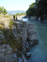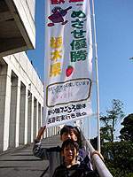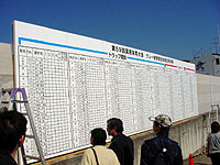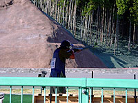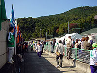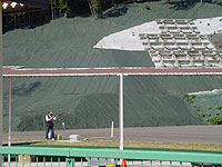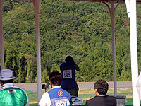 平成16年10月23日から数日にわたり第59回国民体育大会「彩の国まごころ国体」が開催されました。クレー射撃は23日の開始式に続き,24日から3日間にわたって長瀞総合射撃場での開催となります。国民体育大会ですから日本全国から各県のトップクラスの方々が集まってきます。トラップ部門は47都道府県から141選手,スキート部門は32都道府県から96選手が集まり,各県のプライドをかけて戦うわけですね!射撃を始めたからにはオリンピックか国体には一度は出たいという気持ちを持つのが道理です。(どういう道理だ)おとうも将来出るであろう国体に見聞を深めるために観戦に行くことにいたしました。えっ,出れるのかって?そんな野暮なことを聞いちゃいけませんよ!江戸っ子だってネ〜,荻窪の生まれヨ〜(どこが江戸だか・・・) さて,ご存じの通り長瀞総合射撃場は昨今の環境問題(鉛)のためここ数年休業状態になっておりました。昨年より射撃を始めたおとうは当然営業状態にある長瀞射撃場を見たこともございませんでした。国体後の営業再開も未だ見えていない中,場合によってはこの目で長瀞射撃場を見れる最後の機会になるかもしれんと気合いもひとしおです。さらに今後の国体(秋季)の開催予定は,岡山(H17)→兵庫(H18)→秋田(H19)→大分(H20)→新潟(H21)→千葉(H22)となっておりますので,近場でいける国体は6年先までないということになってしまいます。今年見ずしていつ見るのだ!もう観戦臨戦モード全開です。 事前のMoon情報によると開始式には各県の代表がプラカードを掲げ入場行進をするとのこと。国体ならではの風景だよ!と伺っていたので是非とも行進から見たいと思っていたのですが,あいにくこの日は子供の送り迎えで現地には行けそうにありません。JMなどはコスプレで入場行進してくれると言っていたのに行けなくて残念です・・・(結局したの?してないの?)国体観戦のために休暇も取れないので,結局は競技第1日目のみ観戦と相成りました。当日は我が家のお子〜たま×2を長瀞って川下りが出来るんだよ〜という甘い言葉で誘い出し,一家3人(あっ嫁忘れた・・・)でピクニック気分です。事前に東の核弾頭さんからお伺いしていた駐車場情報を元に,宝登山ロープウェー駐車場にむけてドライブです。埼玉県に入ると随所にいろいろな競技の国体会場の看板が目に付くようになってきます。途中よったコンビニにもその町で開催されている国体競技会場などの簡単な案内などが置いてあります。お祭り気分満載でなんか良いですね,みんなで盛り上げている感じがして。 さて,朝9時くらいには国体ライフル射撃観戦者用第3駐車場という看板の掲げられた宝登山ロープウェー駐車場に到着,早速川下りに出発です。  ロープウェーの駐車場からひたすら坂を下り,長瀞駅を越えて有名な岩畳までまっしぐらです。でもね・・・先日の台風23号(トカゲ)のおかげで荒川は大増水だったらしく,この日もかなり水がひいたとはいえまだまだ水量も多く流れも激しい様子。当然川下りは営業しません!という立て札が出ておりました・・・悲しい。子供達からは大ブーイングの嵐です。親の面目丸つぶれです。しょうがないので岩畳を散策し,ちょっと理科(地理)のお勉強会を開催です。 おとうは理科の先生を目指していた時期もありましたので野外授業はお手のものですが,地学はあまり得意ではありません。岩畳のできる仕組みについていい加減な講義をし,子供達に「へぇ〜」ボタンを無理矢理押させればこっちのものです。親の威厳を強制的に復活させます。このまま射場に行ってもちょっと子供が飽きる可能性が大なので,来た道を一路Uターンして宝登山ロープウェーに向かうことにしました。恐らくはこんなことでもないと乗らないであろうロープウェーに搭乗し,山頂乗り場まで約5分の空中散歩です。 山頂まではさらに5分くらいのハイキングで到着,長瀞の町を一望できます。しかし山頂から見ても確かに水量が多いのがわかるなぁ〜。山を登り終わってしまうともう行くところがありません,おとなしく射場へ向かうこととします。 射場へはシャトルバスが運行しており,おとうが停めたロープウェーの駐車場の他,もう一つの駐車場や長瀞の駅から無料で送迎をしてくれます。駐車場の案内も町内各所に看板が立ち並び,案内の係りの方(たぶん地元自治会関係の方では?)も各所にたっているので迷うことなく目的地に行くことができます。地元の方々の協力なくして国体は出来ない,って正直思えましたね。駐車場からはシャトルバスで射場に向かうのですが,長瀞駅発のシャトルバスは結構満員状態,観光バスを利用しているため立ち乗り乗車はできません。あえなく数名だけが乗車して次のバスを待つことになります。でも係りの人たちは頑張っています。無線でいろいろと手配をしてものの数分で臨時のバスを手配し,駐車場で待っている多くの方々を射場まで速やかに出発させてくれました。シャトルバスはこの第3駐車場の他,もう一つ